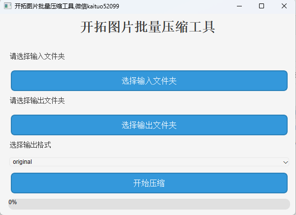 1. 选择输入文件夹:点击“选择输入文件夹”按钮,选择包含需要压缩的图片文件的文件夹。